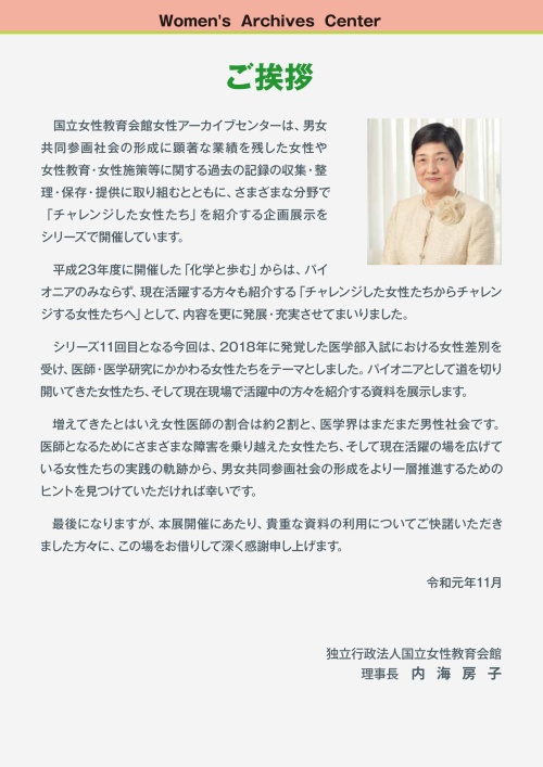 - オンライン展示「女性と医学展 ~チャレンジした女性たちからチャレンジする女性たちへ~」