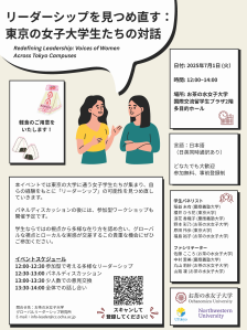 - グローバルリーダーシップ研究所 学生交流イベント「リーダーシップを見つめ直す:東京の女子大学生たちの対話」(お茶の水女子大学)