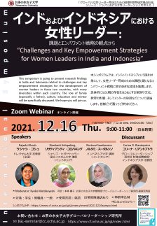 - 国際シンポジウム「インドおよびインドネシアにおける女性リーダー:課題とエンパワメント戦略の観点から」Challenges and Key Empowerment Strategies for Women Leaders in India and Indonesia(お茶の水女子大学)