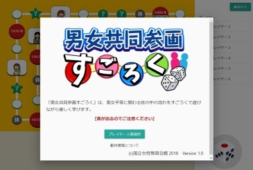 男女共同参画すごろくは、戦後から現在までの男女共同参画の歴史に触れられるすごろくゲームです。紙版・電子版ともに、当館リポジトリよりダウンロードいただけます。ぜひご家庭でもご活用ください。