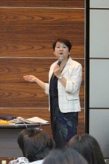 初日の講義は、須藤八千代愛知県立大学名誉教授(写真左)による「男女共同参画の視点に立った女性相談とは」。その中でまず須藤氏は「相談」の持つ意味の重要性について、「セラピーでもカウンセリングでもない、この2文字が持つ意味は、聞くだけではなく、相談員が何気ない相談の中で語られるエピソードからどれだけその奥にあるものを読み取るかであり、それが相談者の持つエネルギーの転換につながっていきます」と述べた。また、相談の対応力としては、相談員自身の力が40%、組織の力が60%と話され、組織が機能しないと相談者へ充分な対応がなされないと指摘。これからは男性の苦しみへのサポートも進めていく時代に入ったことを伝えた。続く講義「女性相談の実態と支援に関する法知識」では、白石美奈子とらすと法律事務所弁護士(写真右)が、実際の書式を使って調停での進め方などについて具体的に解説しつつ、相談者に寄り添った対策の仕方について語った。