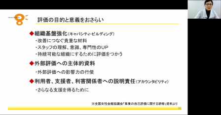 当館情報課図書・情報係長(併)専門職員の森未知より、地域の拠点施設における情報事業の役割について確認しながら、企画立案の際の情報収集に役立つ、当館のデータベースの活用方法について紹介しました。